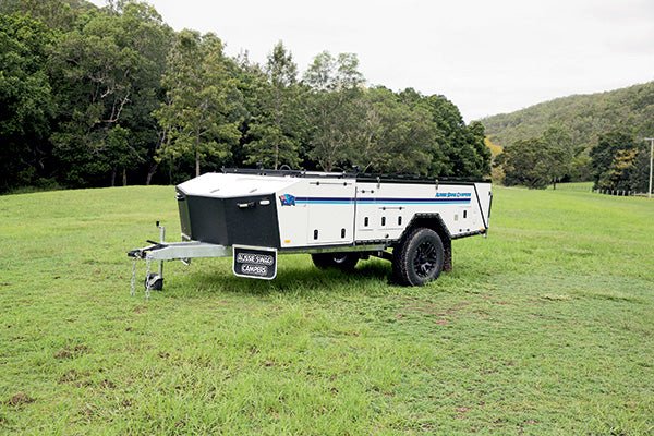 It’s with that in mind we loaded up the 4WD with servo snacks and cold beer to head north to D’Aguilar National Park, an hour or so inland of Bribie Island to check out the new Australian built Aussie Swag Campers Ultra Max, a top-of-the-line electrically operated rear-fold with more bells and whistles than you can shake a pole at. A ground-up design, on-shore manufacturing and trick composite construction sees the Ultra Max punch in at close to three times the price of your typical imported camper, but is it three times the value?