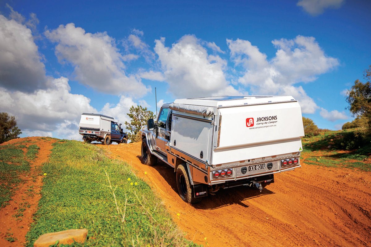 Ideally, your chosen vehicle will carry its spare tyre underneath. However, if you fit larger tyres or wish to carry two you may have to relocate the spare/s. For single cabs, there’s enough space between the cab and slide-on, plus Jacksons are experimenting with a tray-mounted rear spare holder. You can also use the cab’s roof rack, but retrieving and remounting a tyre from up here would be unpleasant.