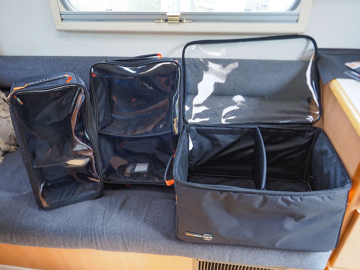 The pods come in three different sizes, and Oztent supplied each set us to try. We used them to tidy up the space under the bed, and two things were immediately apparent. The first was that we carry too much extraneous stuff. For example, do you really need four sets of sheets and five floor mats? The second was how nicely the pods transformed the mess into a neat space.
