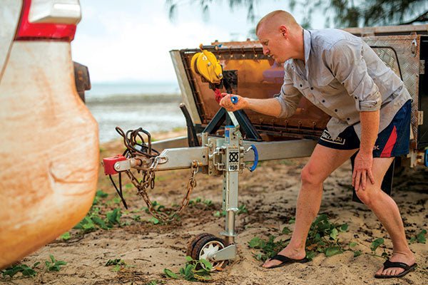 The first thing of note is how stout this thing is built. Sure, there’s a discernible difference between bargain basement wheels and a name-brand component, but the XO is on another level. It just feels sturdy, from the positive engagement of the winding and tilting mechanisms to the solid clunk as the wheel kicks into place you’re not for a second wondering if it’s strong enough. And with a rating of 750kg Ark is more than backing their product. Ark claims the twin wheel design allows you to disconnect the camper and self-recover the trailer as a stand alone unit if need be. We tested it on the soft sands of Loyalty Beach, and despite digging down further than we had expected the increased footprint eventually found purchase and allowed us to nose the trailer out on the end of a snatch strap.
