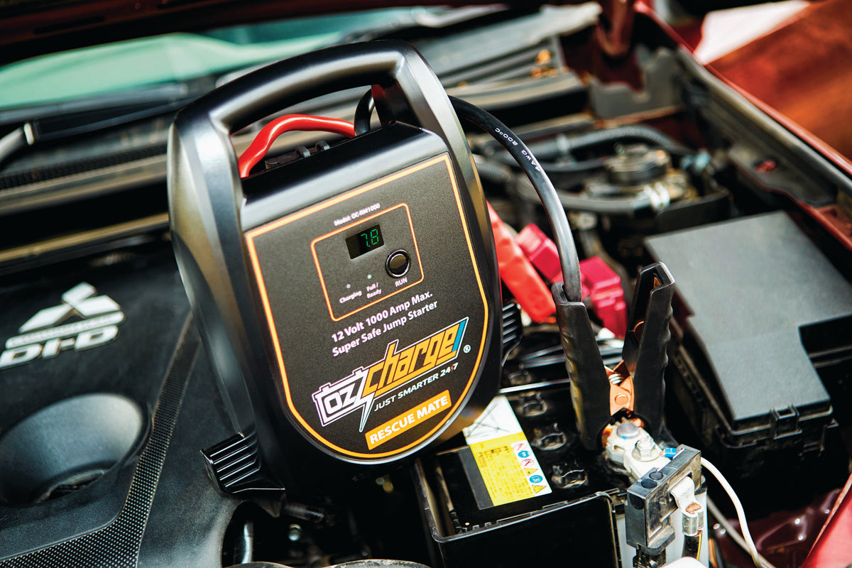 With no in-built battery, the OzCharge Rescue Mate uses super-capacitors to build a powerful charge quickly, even from a flat battery – not a fully dead one, but one unable to crank your pride and joy. The RM 1000 can draw from a battery as low as 3V.