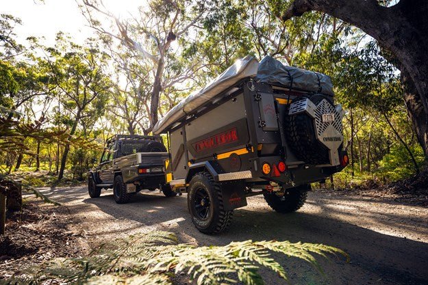 The Conqueror UEV-390 Platinum may have been built in South Africa, but only after extensive input from the Australian end. The recipe called for an extreme offroad camper with hammertone finish paint, big tyres, big ground clearance, box section chassis, batwing awning and an electric tent.