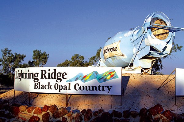 In far northern NSW, the town of Lightning Ridge is the major centre for the most valuable form of opal: black opal. As the name suggests, the black background of this gem highlights the colour to such an extent that it is worth much more than the more common white opal.