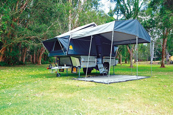 Our demonstration unit was from the “Silver Series” which adds around $2700.00 worth of extras for a discounted rate of $2K, all up. It has a side folding boat/luggage rack, stainless steel kitchen drying rack/shelf, 200KWT portable solar panels, as well as a portable gas hot water system. Simply add a separate shower tent and porta potti and you have a very complete package, with hot water to sink and shower. There’s a long list of additional options to allow you to customize the unit, however the chosen specification presents terrific value at an advertised price of only $21,999.00 with the Silver Series package, or even cheaper with the standard forward fold model at only $19,990.00.
