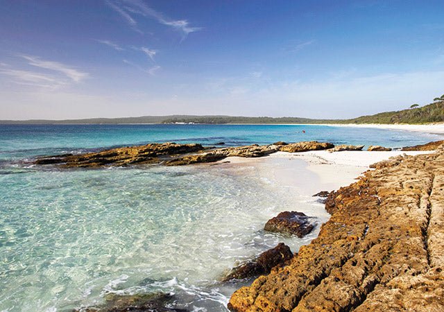 Located at Jervis Bay on the NSW South Coast, two and a half hours’ drive from Sydney, Booderee is defined visually by thick coastal bushland spilling over crumbling cliffs and onto stark white sands which lead to the azure waters of Jervis Bay. So pack the snorkel, the fishing rods, the stand-up paddleboard and the walking shoes, because there are countless stunning beaches and walking tracks to explore.