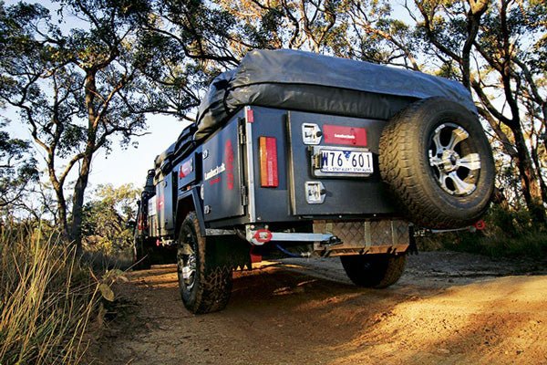 I must say, I was impressed with the outer presentation of the Lumberjack. She’s neat, compact and looks terrific on the road. Everything is fully encased in well-sealed containers and there are no loose or nagging rattles to annoy you. The paint scheme is a smart two-tone grey with aluminium checkerplate highlights and is topped off with a heavyweight PVC travel cover, secured with zips and hook and fastener edges acting together to keep out the dust and grime. We loaded up the old Disco and headed down the Great Ocean Road in search of adventure, singing that tune that kept rolling around in our heads – “I’m a lumberjack and I’m okay!”