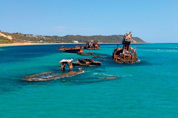 One of the most enduring images of Moreton Island are the Tangalooma wrecks. Fifteen old ex-government boats were deliberately sunk on the western side of the island to form something of a haven for small crafts.
