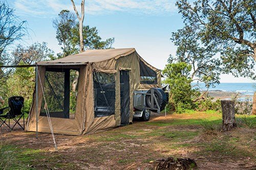OCA has options available for the Tanami including side walls; annexe walls; flywire walls; clear PVC camper windows; clear PVC annexe window; rear bedroom; shadecloth tent mat; shadecloth awning mat; 12V LED hook and loop strip lights; Joolca hot water shower; second gas bayonet for barbecue/shower; swing-over boat rack; registration (Vic only).