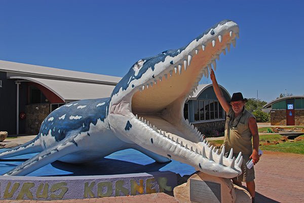 West to Boulia is another collection of dinosaur-aged marine fossils from an area well away from any remains of land living organisms. Here, (and the Kronosaurus Corner), you’ll learn of the recent rare discovery of an early dino-bird evolving from dinosaur ancestors.
