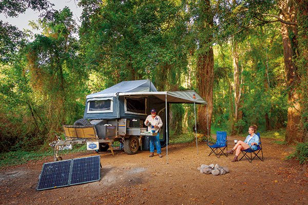 The beast glistened in the late afternoon sunshine, still wet from splashing through creeks along the Scenic Rim, a dramatic and incredibly beautiful stretch of volcanic peaks clad in subtropical rainforest in the Gold Coast Hinterland. We were towing the Nugget, a rather comically named but seriously capable camper trailer from Brisbane’s Stoney Creek Campers. With a couple of days cleared from the schedule and the weather on our side, we were stoked to be heading into the scrub in this beautiful part of the world to put the Nugget through its paces.