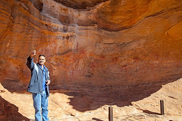 Later that day our group decided to check out scenic Mutawintji Gorge. With its white sand, orange rock walls and large river gums the location is very photogenic. The rest of the group, having tired of me taking ‘just one more photo’, walked on. Left alone to my artistic pursuits, I noticed a faint track that led to a nearby rock overhang decorated with ancient Aboriginal hand stencils.