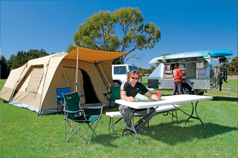 Once the camp was all set up, one really could want for little else. A good size table and benches fit in the trailer, and with the tent erected away from the unit, preparing and cooking food feels very unrestricted. Shelter from the sun or rain, if needed, is provided by the trailer's sturdy aluminium door above the kitchen.