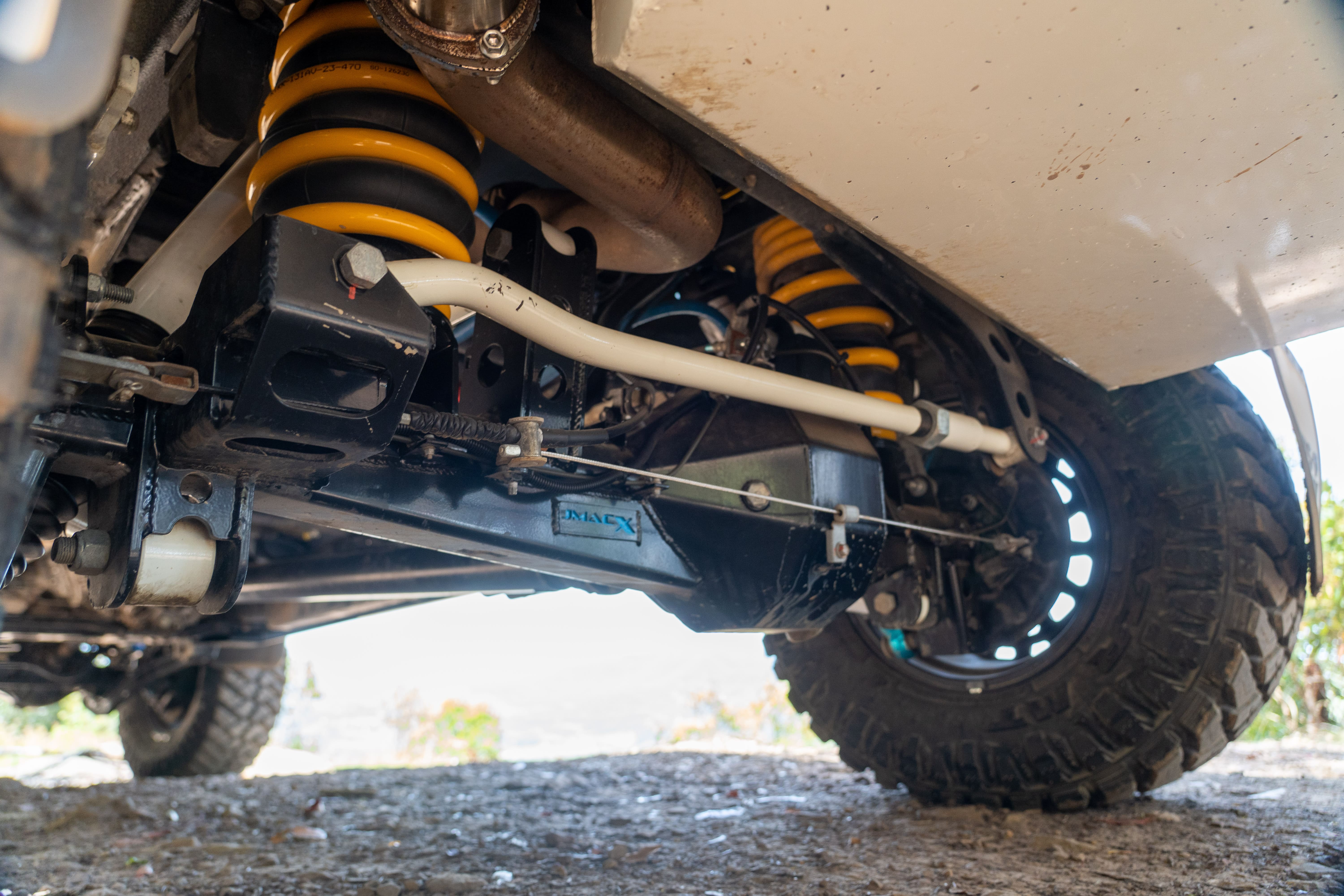 To kick off their showcase on solid ground the team at TJM Hunter Valley fitted up the full suite of Australian built JMACX suspension kit. Bumping the gross vehicle mass from the factory 3500kg up to an impressive 4495kg, the JMACX kit adds in a 300mm chassis extension bumping the ‘Cruisers wheelbase out. The effect is not only more load carrying ability with a larger tray, but better weight distribution and smoother towing. By fitting the JMACX rear setup TJM Hunter Valley also vastly improved the ride quality thanks to converting from leaf spring rear to coil springs. Adjustable arms all ‘round, helper air bags, high-end King shocks and a brake booster upgrade drastically changes the way the ‘Cruiser performs on and off road. The setup not only allows an additional 995kg of payload, but also increased maximum braked towing capacity up to 4000kg making it perfect for towing large caravans and loaded hybrids. The combination sees the 79 riding 4in higher than stock and running 35in tyres legally in every state.